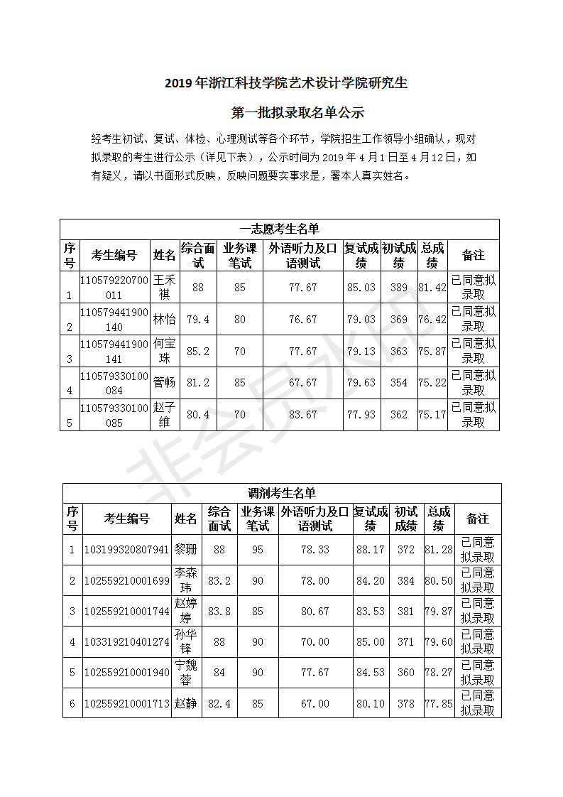 2019年浙江科技学院艺术设计学院研究生 第一批拟录取名单公示