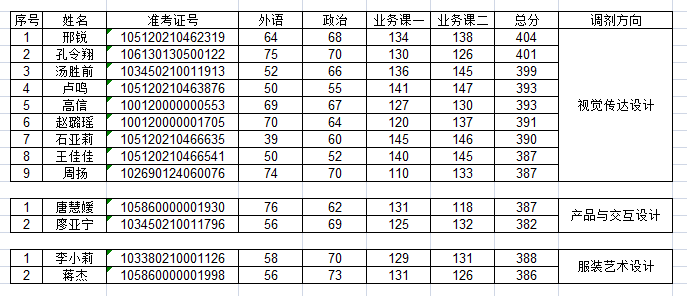 2020年浙江科技学院艺术设计学院研究生第三批复试名单(调剂考生)