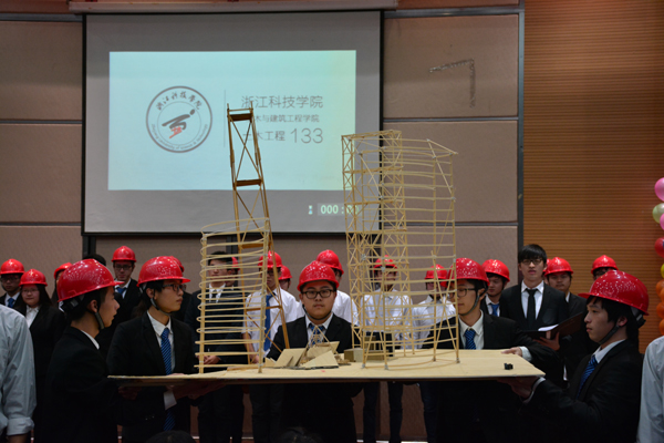 服工131现场做立体剪裁展示,还带来一场T台秀;建工学院土木工程133班把巨型木棍建模模型带上台……鲜明的专业特色跃然而出,他们以专业自豪,潜心钻研。