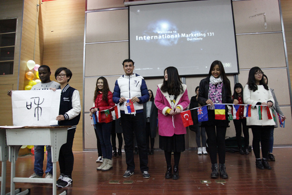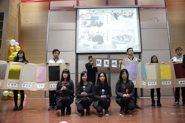 28个同学,10个国家,7种语言,1份情怀,市场营销(国际)131班中外同学一起上台,浓浓的国际范扑面而来。生化/轻工学院轻工132班以造纸术开场,现场展示各色不同的纸;大学生av