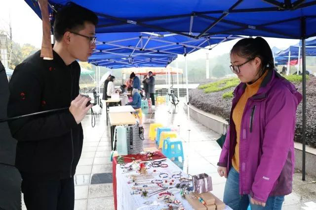 风翩翩,雨渐渐,淋湿了行人,吹走了时光。前期准备工作已经准备的差不多了,创意市集于9:00正式开始。或许是因为天气和日程,刚开始时的行人很少。看着人来人往,看着雨下不停,摊主们依然默默地驻守在摊位上。
