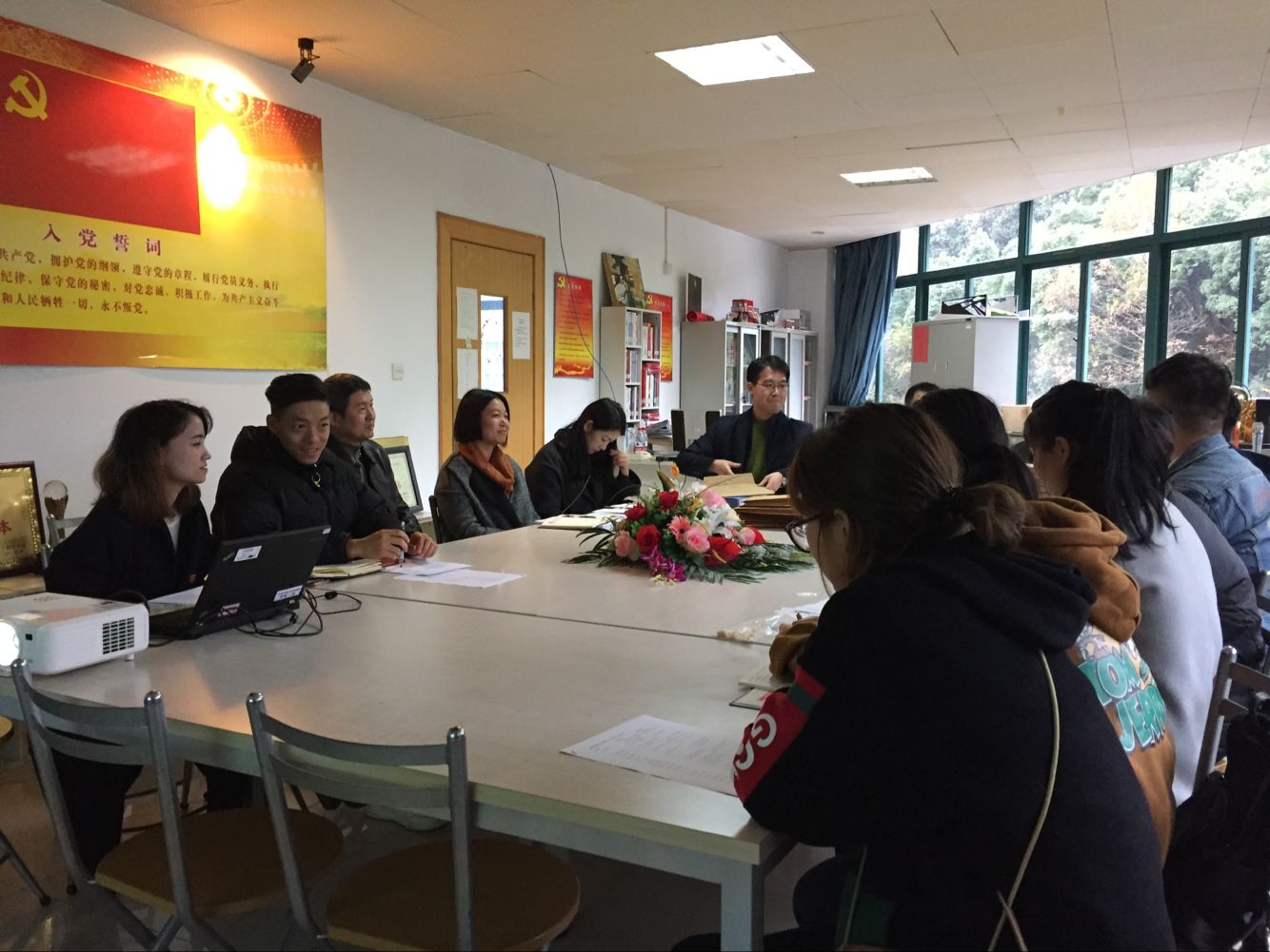 党委在学生党建中取得的成绩,指出:学院党委工作思路清晰,做到了结合专业有特色、志愿服务有品牌,支部建设有规范,党建工作有成效。一是各党支部设置合理,支委班子健全,责任分工明确,做到了支部工作有记录,开展活动有成效;二是党支部能够落实基本工作制度,有党员发展制度,“三会一课”制度、组织生活会制度等;三是党员的教育管理到位,学院领导班子成员能够带头参加十九大精神学习,参加支部大会和各种学习教育活动。