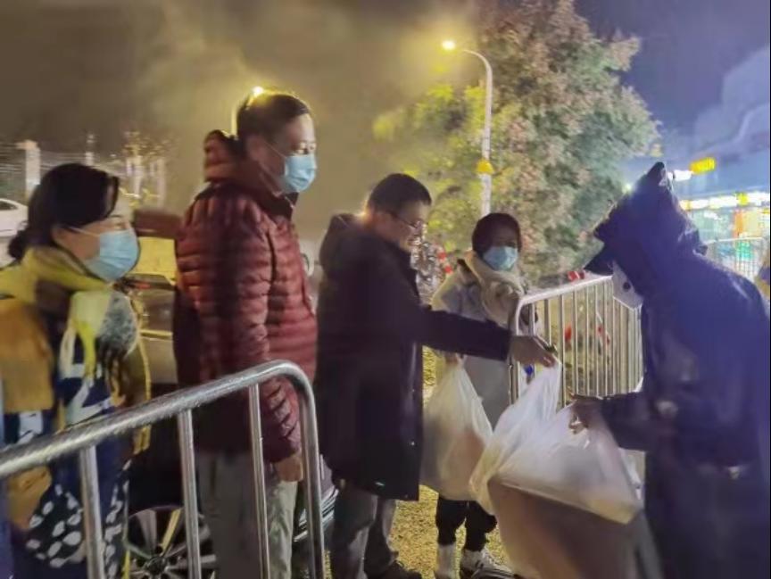 的教工志愿者们积极投身志愿服务,化身“大白”,将生活物资送到隔离点同学们的手中,他们的身影汇聚成了一道道冬日里的暖阳。