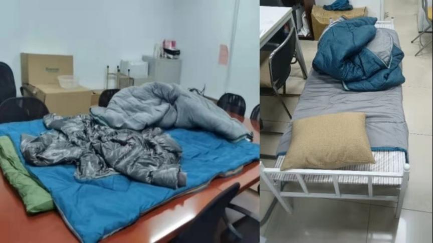抗疫冲锋号吹响,疫情防控专班的领导和老师们克服种种困难义无反顾地加入“抗疫保卫战”中,他们中有的家里孩子小,顾不上照管;有的爱人出差,孩子独自在家,在雨雪交加、气温骤降的冬日里,领导、老师们从凌晨坚守到夜间,他们在办公室、会议室搭建起简易的“小床”休憩,正是他们的不辞辛劳和勇毅坚守,筑起了校园内最坚强的后盾。