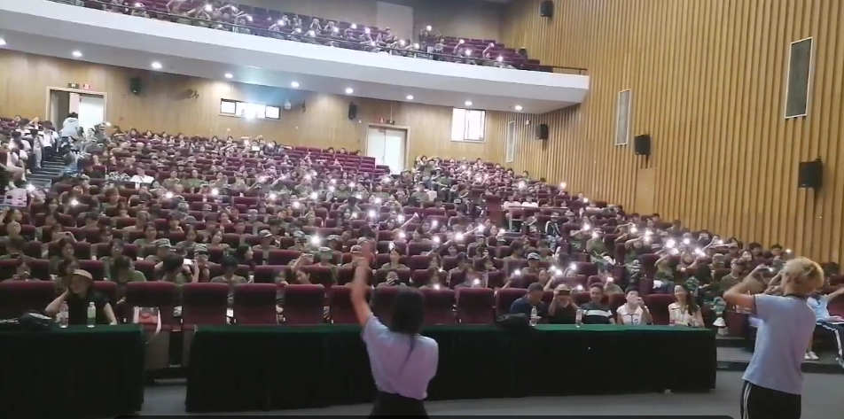 典礼中场由设计学类2303班陈博宇和设计学类2312班周佳语携手,向全体师生献唱歌曲《微微》,全体新生用手机灯光随音乐摇摆,场面温馨美好,洋溢着青春热情与风采。