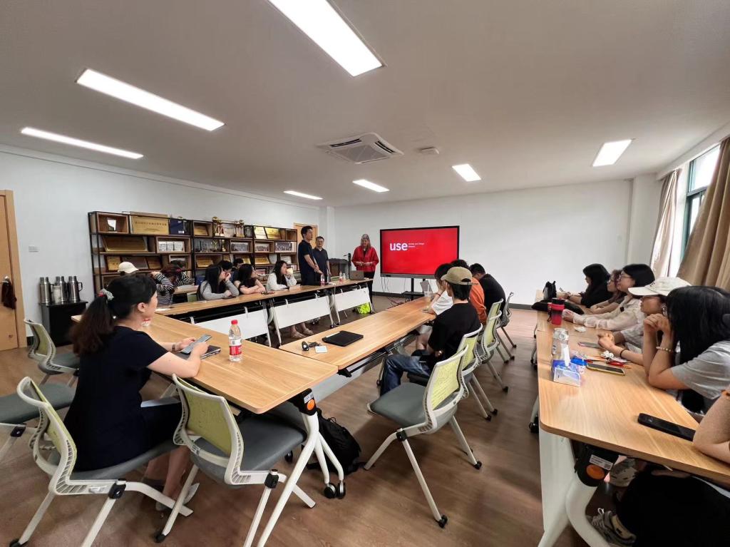 活动由德国DISCIMUS中德教育研究院胡奚院长担任翻译。讲座中,Hinz教授通过生动的PPT展示,详细介绍了她在各个设计领域的研究成果和实践经验。她重点讲解了设计在现代社会中的实际应用和未来发展趋势并分享了她在工业设计和平面设计方面的最新研究进展。讲座不仅理论深刻,而且结合了大量实际案例,使得内容生动且有说服力。