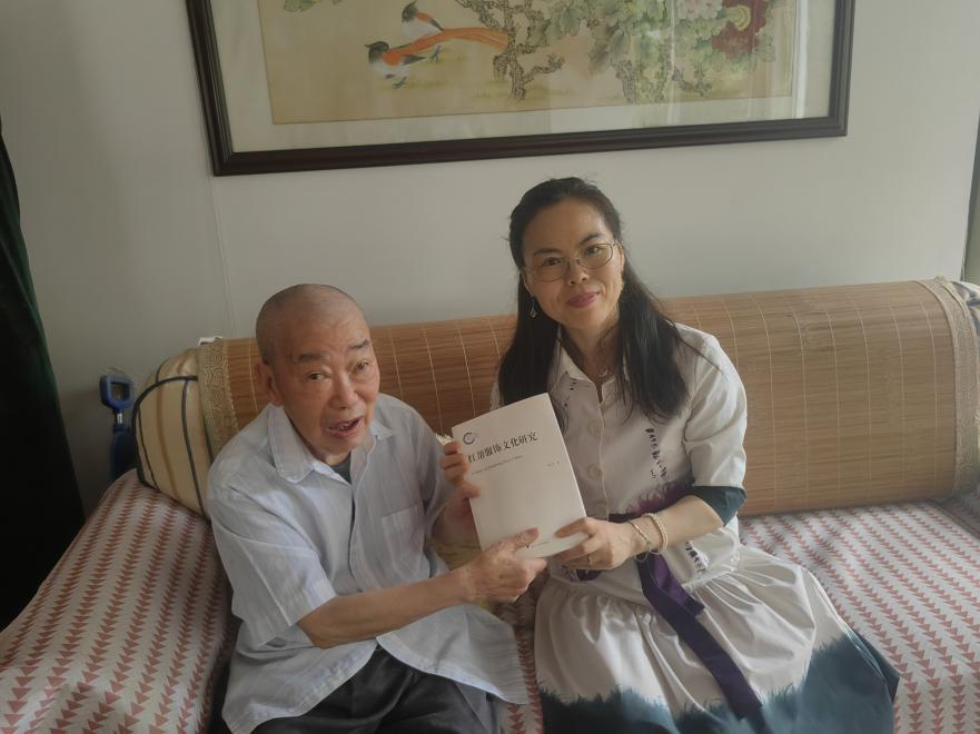 刘云华教授向师父江继明老先生(第六代红帮传人)赠送新著《红帮服饰文化研究》