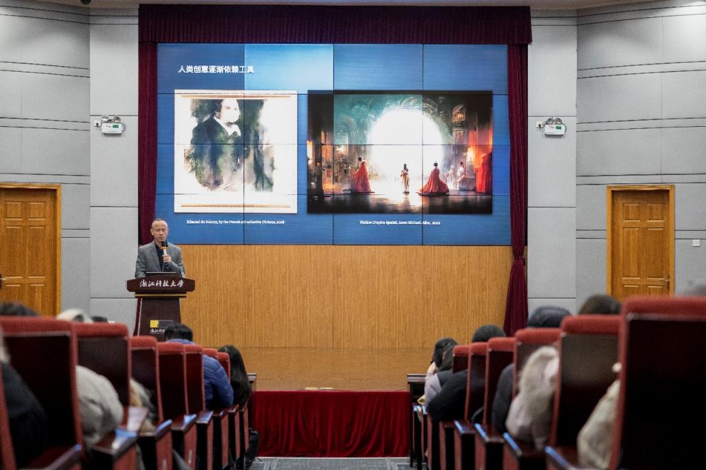 在开放观众提问环节,龚嘉伟教授积极与在场专业教师及同学们探讨如何在科技辅助下保持艺术创作的活力,同时应对技术带来的挑战。这场讲座的核心在于思考如何在科技的变革浪潮中,平衡技术优势与人类创作精神,从而实现更具深度和意义的艺术表达。